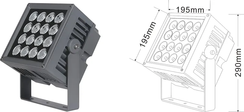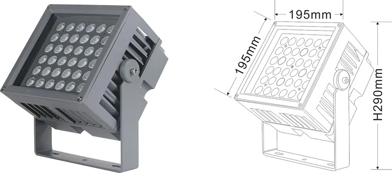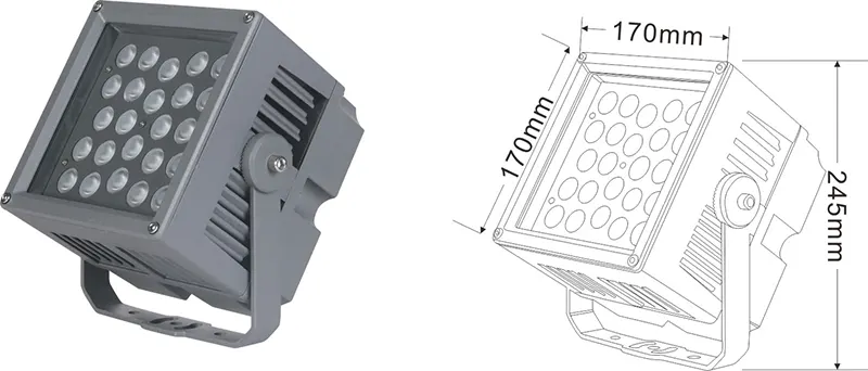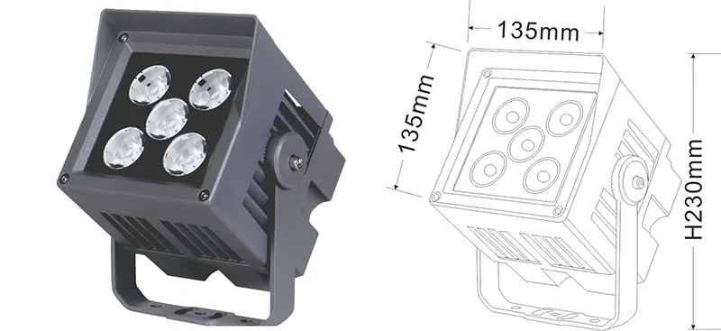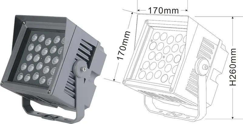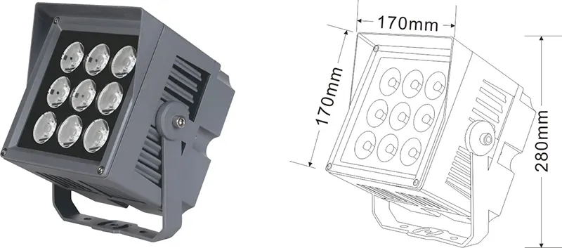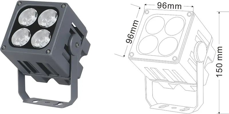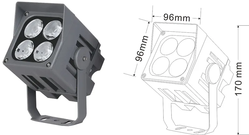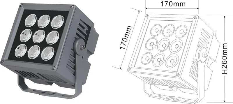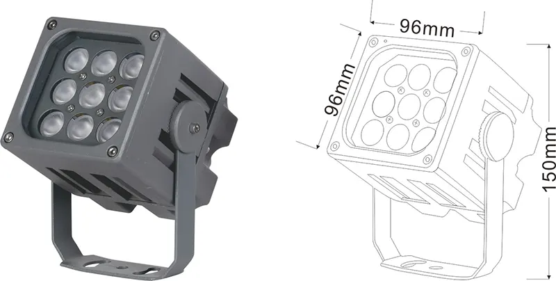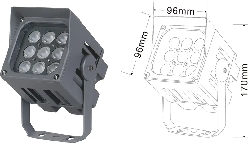 | Світлодіодний пейзажний проектор | Con-tgd06-1 | 96*96*150 мм | 9*2w | Матеріал: алюміній+загартоване скло Тип кронштейна: Регульований IP: IP67 Кольорова температура необов’язкова: 3000K/4000K/6500K RGB / DMX512 RGBW / DMX512 сірий, настроюється, щоб відповідати будівлі Фасадний колір |