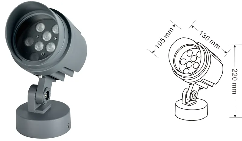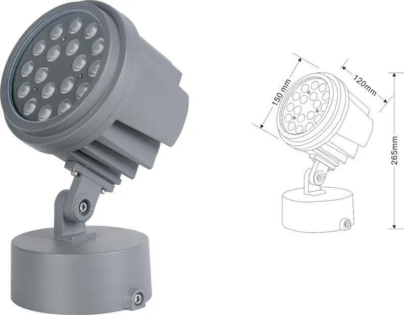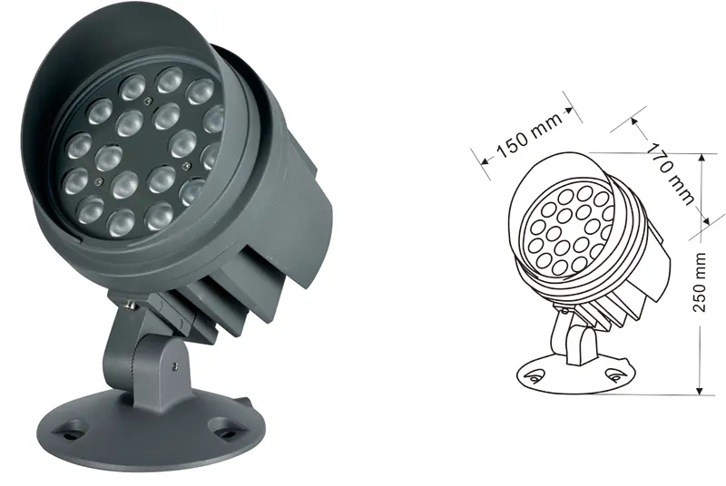 Алюміній+загартоване скло Тип кронштейна: Регульований IP: IP67 Варіанти кольорової температури: 3000K/4000K/6500K RGB/DMX512 (за винятком COB) RGBW/DMX512 (за винятком COB) Традиційний сірий, настроюється, щоб відповідати кольору будівельних фасадів |