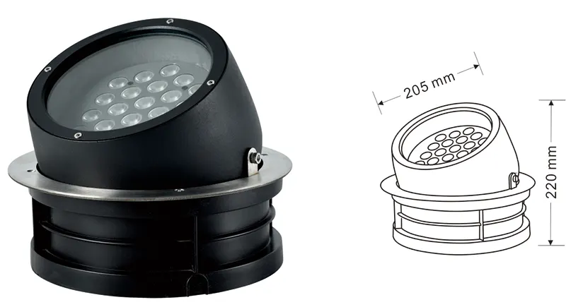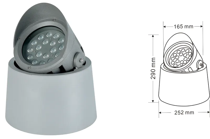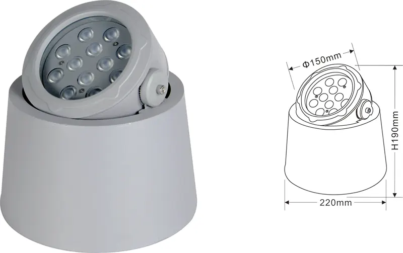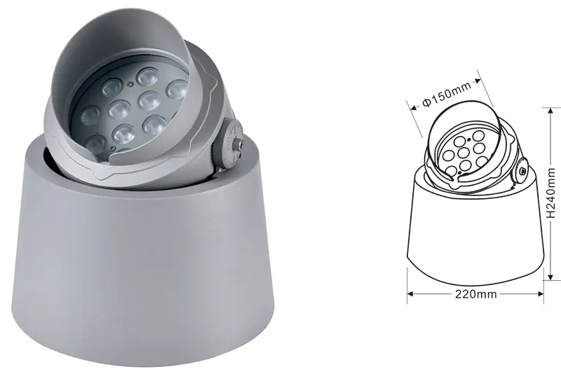 | Світлодітне підвітування дерев | Kons-TGD10-1 | Φ150*φ220*H190mm | 12 Вт | Матеріал: алюміній+загартоване скло Тип кронштейна: Регульований IP: IP67 Кольорова температура необов’язкова: 3000K/4000K/6500K RGB / DMX512 RGBW / DMX512 Звичайний сірий, настроюється, щоб відповідати будівельному кольору фасаду |